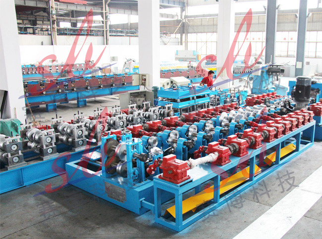 C型钢机和C型钢机采用牌坊,增加机器的牢固性;采用齿轮箱传动,机器运行更稳定;采用成型后剪切,保证了产品的质量,不会产生端口变形;产品广泛应用于钢结构房屋的檩条搭建。